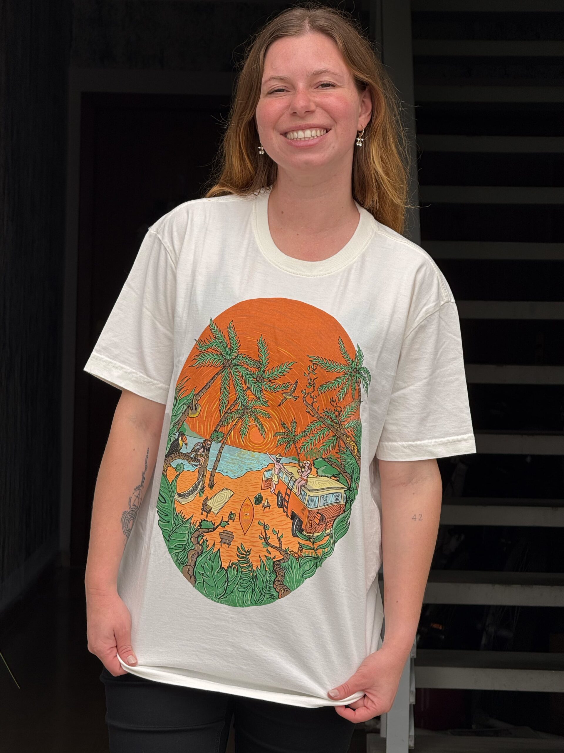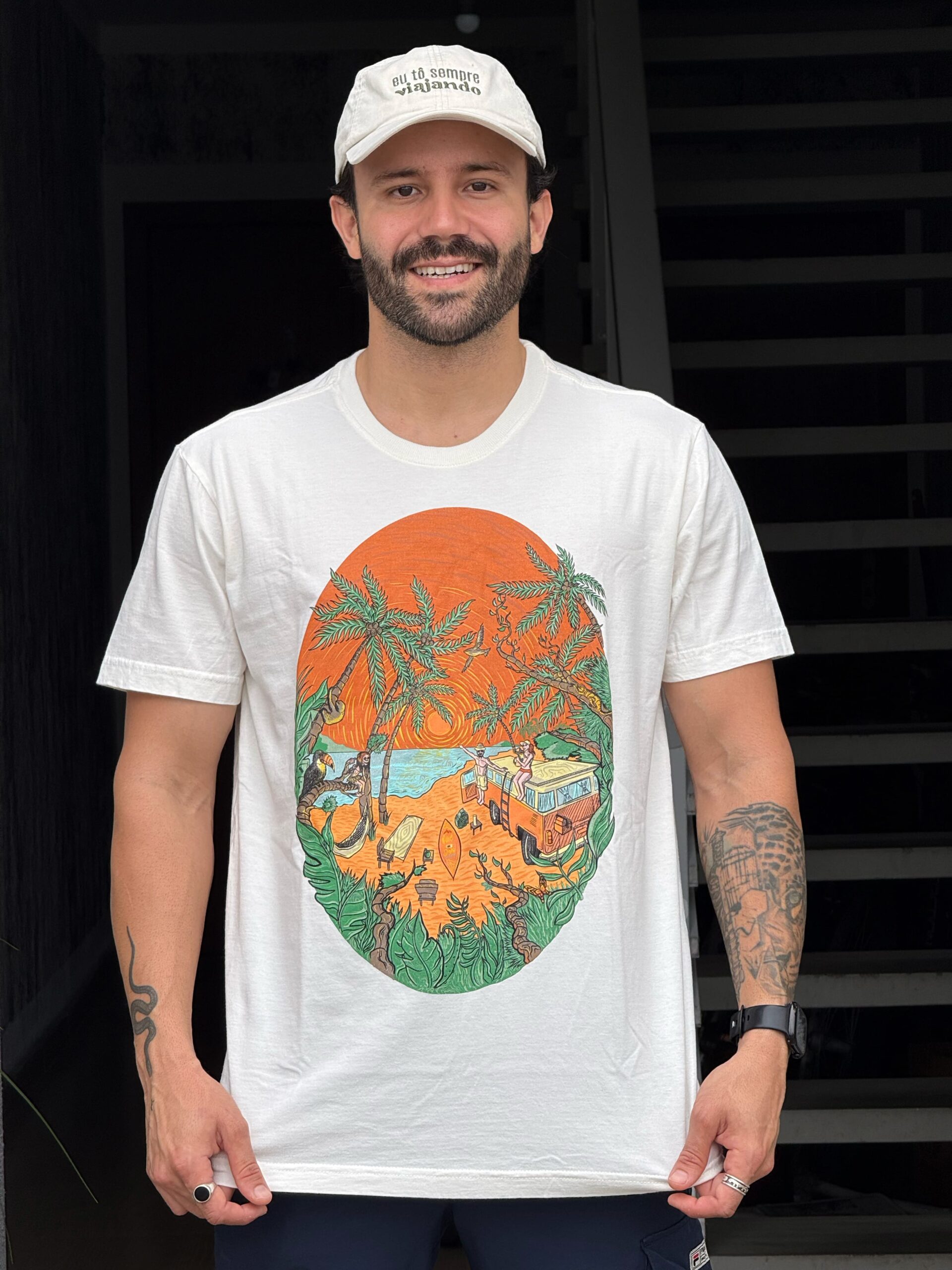 É a CAMISETA DA LEVEZA, do equilíbrio e da vibração pura do litoral.